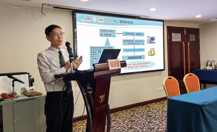 在培訓(xùn)過(guò)程中,鄭院長(zhǎng)以其獨(dú)特的見(jiàn)解,圍繞“涼茶起源、傳承發(fā)展、創(chuàng)新突破、知識(shí)產(chǎn)權(quán)、標(biāo)準(zhǔn)和社會(huì)效益”等七個(gè)方面,形象生動(dòng)地講解研修培訓(xùn)的內(nèi)容,并側(cè)重介紹了涼茶生產(chǎn)和質(zhì)量管理的創(chuàng)新方向、創(chuàng)新案例和創(chuàng)新成果,圖文并茂,使學(xué)員們對(duì)國(guó)家級(jí)非遺項(xiàng)目“涼茶”有了更加深入、全面、透徹的認(rèn)識(shí)。