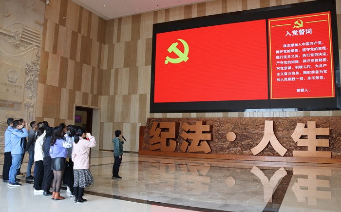 隨著基地講解員的腳步,大家參觀了 “源流紀法、正視紀法、知行紀法、鏡鑒紀法、尊崇紀法、抉擇紀法”六大展廳,了解到先秦以來中華民族紀法文明的燦爛,體會到紀律建設的重要意義。一幅幅生動詳實的圖文,一段段珍貴的影音,一個個發人深省的貪污腐敗典型案例,以及老一輩無產階級革命家清正廉明的家風家教,讓全體紀檢干部接受了一次深刻的紀法教育和精神洗滌。警示教育片《懺悔》更是讓在場黨員意識到唯有在思想上筑起拒腐防變的防線,堂堂正正做人,清清白白做事,才能永葆共產黨員的先進性和純潔性,才能走好自己的人生路。