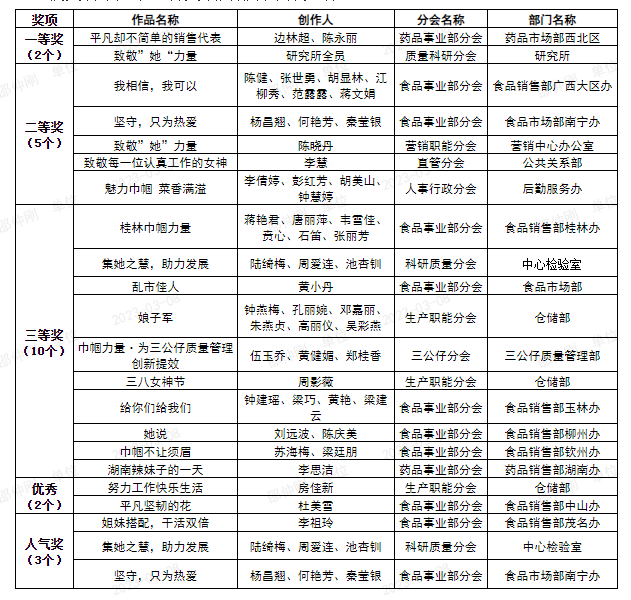 2月14日至2月28日,工會舉辦主題為“創(chuàng)新提效?巾幗力量”的三八婦女節(jié)短視頻比賽。共收到參賽作品33個。視頻作品以公司女職工工作崗位、工作內(nèi)容、工作場景為主要內(nèi)容,貼合活動主題,體現(xiàn)王老吉藥業(yè)女職工的巾幗精神,表達的思想積極健康、表現(xiàn)力強、真實發(fā)生、情感真摯。通過評比和網(wǎng)上投票,在三八當天中午公布了評比結(jié)果,共評出獲獎作品22個,其中一等獎2個、二等獎5個、三等獎10個、優(yōu)秀獎2個、人氣獎3個。