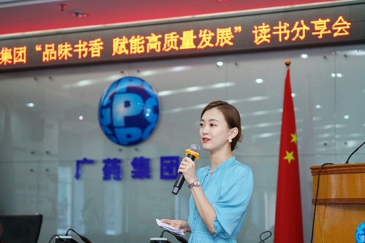 廣藥集團(tuán)工會(huì)主席李錦云為活動(dòng)致辭,拉開(kāi)活動(dòng)序幕。現(xiàn)場(chǎng)青年代表踴躍分享自己推薦的一本好書(shū),各位青年代表分享后,李昕曦對(duì)分享也談了自己的感悟,通過(guò)在閱讀中找榜樣,樹(shù)信心,立志向,守規(guī)則,研學(xué)術(shù),來(lái)完成生活方式、工作方式的改變和升華。