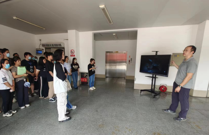 隨著演練總指揮的一聲令下,演練拉開帷幕,首先進行的是電梯救援演練,本次演練模擬職工乘坐電梯時,電梯運行過程中突然停止運行,轎廂門無法正常開啟,同時電梯內有人員暈倒,心肺功能停頓。被困人員馬上撥打內線報警電話“3713”進行求救,并馬上對暈倒人員施行心肺復蘇急救。西門值班人員接報后馬上通知電梯維保人員,電梯維保人員接聽到電話后,快速到達救援現場,判斷轎廂所處位置,告知被困人員正在進行解救、不能試圖扒門、踢門。最后維保人員成功安全的將被困人員解救。120趕到現場將暈倒人員送醫治療。救援過程中,培訓講師通過屏幕直播對電梯外的參訓人員進行了詳細的講解,有效加強了學員對電梯受困時的應對能力。