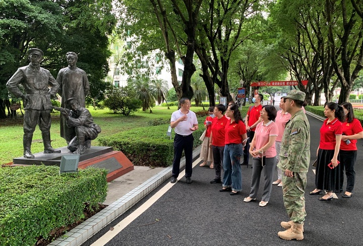 在海軍陸戰學院,大家參觀了石井兵工廠遺址,通過聆聽講解,現場觀看珍貴文物、歷史照片,回顧了由晚清名臣張之洞創辦的嶺南最早的近代官辦兵工廠,后來成為農民運動講習所學員軍事訓練基地的光輝歷史。老一輩革命家孫中山、廖仲愷、毛澤東、周恩來、楊殷等曾先后在此開展工作,大家在緬懷革命先烈艱苦奮斗豐功偉績的同時,也激發了干事創業的熱情和決心。