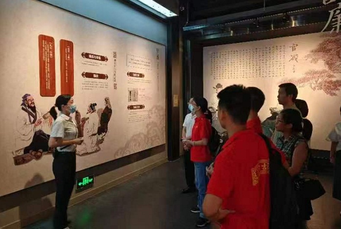黨員們在講解員帶領下首先來到了主題為菊贊的序廳中,序廳中通過多媒體等手段,展示廉傳千年、古越今秀、菊香滿堂,詮釋廉字及“廉潔”一詞的由來。接著講解員通過生動細致的講解結合各色的文字圖片等為黨員們以“修身齊家治國平天下”為主線,從“人潔、家正、官廉、國興”四個層面,展示中華古代廉潔人物典故及家風、家訓等方面來敘述中華傳統廉潔文化。古代思想家十分尊崇自身修養,為官為政之道,修身做人是根本。先修身后齊家,古之圣賢對家風傳承也是非常重視的,其中的《朱子家訓》《曾國藩家訓》等,都是家喻戶曉、耳熟能詳的。而北宋名臣包拯的家訓核心思想就是:做人不能貪圖功名利祿,為人要正直。充分體現其廉潔的家風。館中還重點介紹東漢名臣楊孚、飲“貪泉”而不貪的東晉吳隱之、“一代清官”許應鑅、“晚清第一清官”駱秉章等廣州歷史上著名的廉潔先賢事跡,黨員們從中接受了廉潔文化熏陶,個人的世界觀、人生觀、價值觀、權利觀得到了升華,加強自身修養,從思想上筑牢拒腐防變的思想防線。