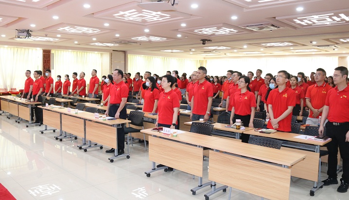 首先,黨委副書記何毅同志宣布大會(huì)開始,全體起立奏唱《國(guó)歌》。