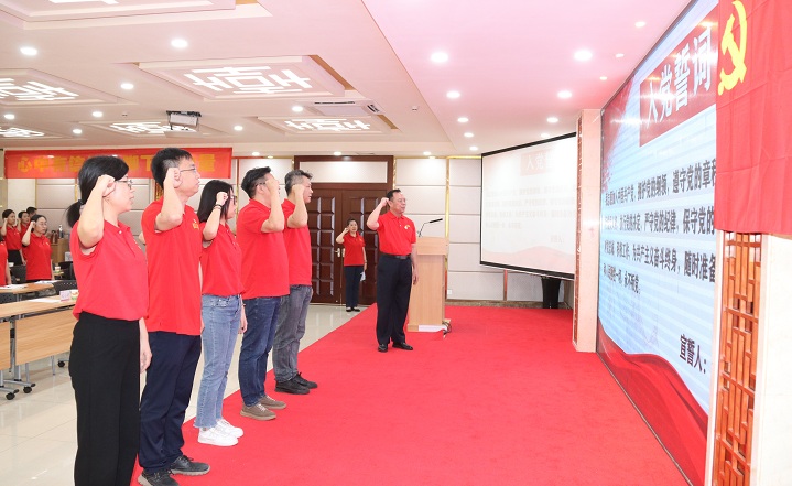 隨后,五名新黨員在陳偉平同志帶領(lǐng)下面向黨旗,莊嚴(yán)宣誓。與會(huì)的全體黨員以重溫入黨誓詞再憶入黨初心。鏗鏘有力的宣誓聲,既是新黨員的決心,也是黨員同志們的心聲。