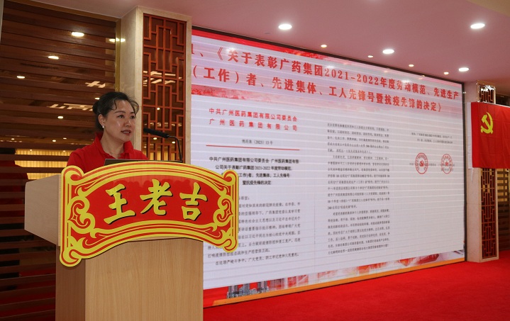 會(huì)上,何毅同志宣讀了《關(guān)于表彰廣藥集團(tuán)2021-2022年度勞動(dòng)模范、先進(jìn)生產(chǎn)(工作)者、先進(jìn)集體、工人先鋒號(hào)暨抗疫先鋒的決定》《關(guān)于表彰王老吉藥業(yè)2021-2022年度抗疫先鋒的決定》《關(guān)于表彰王老吉藥業(yè)優(yōu)秀共產(chǎn)黨員、優(yōu)秀黨務(wù)工作者和先進(jìn)基層黨組織的決定》《關(guān)于表彰“學(xué)習(xí)強(qiáng)國(guó)”年度積極分子的決定》等表彰決定。