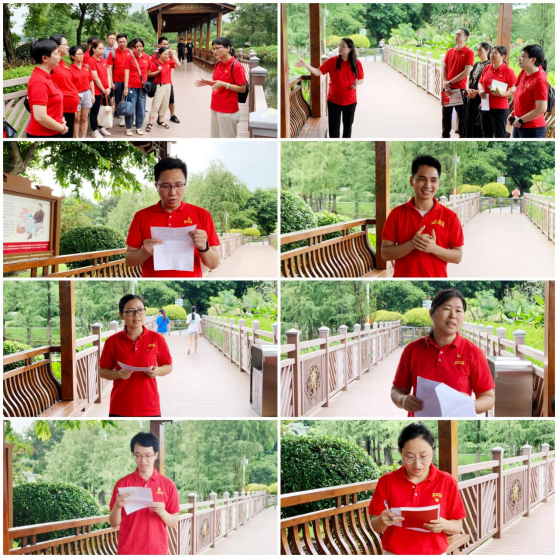 大家先后參觀了崇廉石、清蓮池、木雕棧道、版畫親水平臺、官箴文化長廊、水文化長廊、四君子園等景點,沿途細讀歷史名人的廉潔故事、清廉古詩和廉政警句,在湖光瀲滟中,感受崇廉園 “水文化、蓮文化、樹文化、花文化、官箴文化”的水務特色廉潔文化。