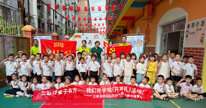 王老吉藥業藥品江西辦聯合江西洪興大藥房連鎖攜手南昌市青山湖區順外保育院,共同開展三公仔愛子有方——我們開學啦《開筆禮》活動。“開筆禮”活動,吸引了超過百名家長和孩子,在活動中通過公仔活化,讓小朋友們了解到三公仔兒藥的魅力 -
