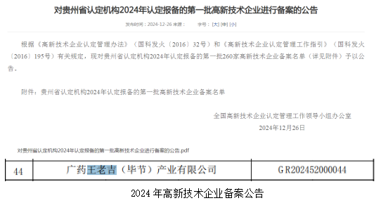 科技創(chuàng)新結(jié)碩果,賦能發(fā)展新高度|廣藥王老吉畢節(jié)公司首獲國家高新技術(shù)企業(yè)認定