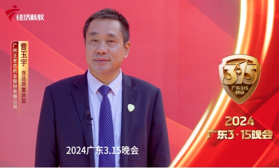 2024“3·15國際消費者權益日"來臨之際,由廣東廣播電視臺、南方財經全媒體集團主辦,廣東廣播電視臺新聞頻道、廣東經濟科教頻道等聯合承辦的2024廣東315晚會,以“激發消費活力,優化消費環境”為主題,積極助力廣東經濟質量發展,為推動消費者教育和知識普及、推動建設市場化、法制化、國際化營商環境,發揮積極的正能量作用。廣州王老吉藥業作為優秀企業代表,受邀參加2024年廣東“315晚會”錄制。 我司食品質量總監曹玉宇作為企業代表,為315晚會活動錄制打call視頻:倡導誠實守信,共筑消費安全,強化質量意識,打造優質品牌,提供優質服務,共創和諧消費環境,激發消費活力,樂享高品質消費, -