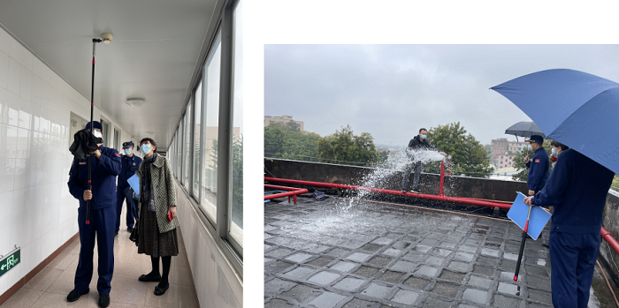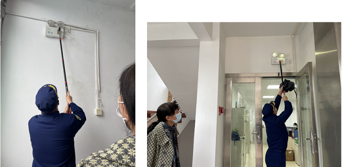 3. 抽查科研樓應急燈、感煙探測器的運行情況,還做了消防未端試水測試。