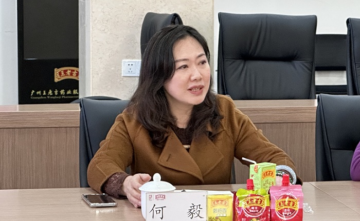 何毅副書記首先代表王老吉藥業(yè)對(duì)長(zhǎng)汀縣政府代表團(tuán)一行的到來表示熱情歡迎,并對(duì)廣藥集團(tuán)、王老吉藥業(yè)的具體情況進(jìn)行了介紹。她指出,王老吉品牌始創(chuàng)于1828年,品牌價(jià)值高達(dá)1080億元。王老吉藥業(yè)作為廣藥集團(tuán)大健康板塊的重要成員,堅(jiān)持深耕王老吉涼茶市場(chǎng),不斷研發(fā)新產(chǎn)品,煥發(fā)中華老字號(hào)品牌新活力。其中,刺梨系列產(chǎn)品從研發(fā)到上市,再到現(xiàn)如今的飛速發(fā)展,體現(xiàn)了廣藥集團(tuán)響應(yīng)鄉(xiāng)村振興、落實(shí)真正幫扶的初心。她還邀請(qǐng)來賓們品嘗王老吉涼茶、刺檸吉潤(rùn)喉糖、龜苓膏等產(chǎn)品,并從材料選擇、科技創(chuàng)新、制作工藝等方面介紹了王老吉系列產(chǎn)品的創(chuàng)新特色,得到了客人們的一致好評(píng)。